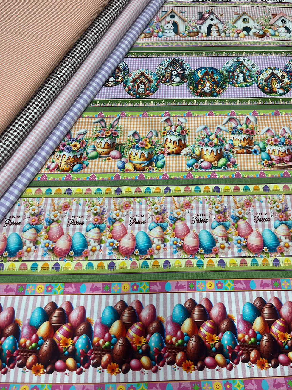 Tecidos barrados com estampas que terminam em uma linha definida, ideais para confecção de toalhas, panos de prato, barras de cortinas e projetos de costura criativa. Perfeitos para dar acabamentos especiais em peças de decoração e utensílios domésticos.
