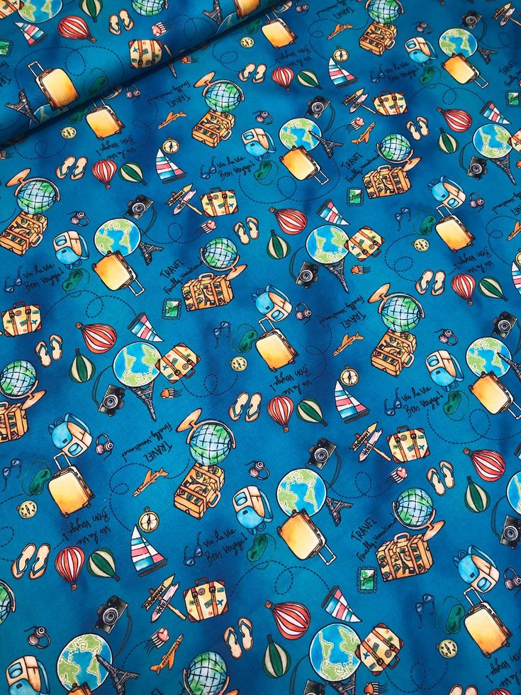 Tecido Tricoline Digital Mapa Mundi e Balões 999 IG - 50x150cm