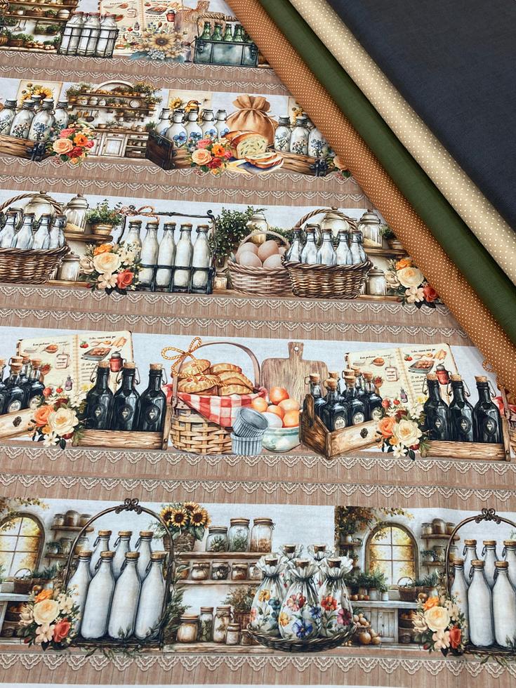 Tecido Tricoline Barrado Digital Aconchego da Cozinha Country 3234 IG - 55x150cm