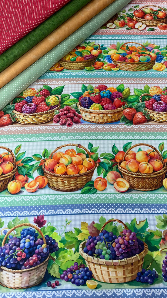 Tecido Tricoline Barrado Digital Cestas de Frutas PN608 - 55x150cm