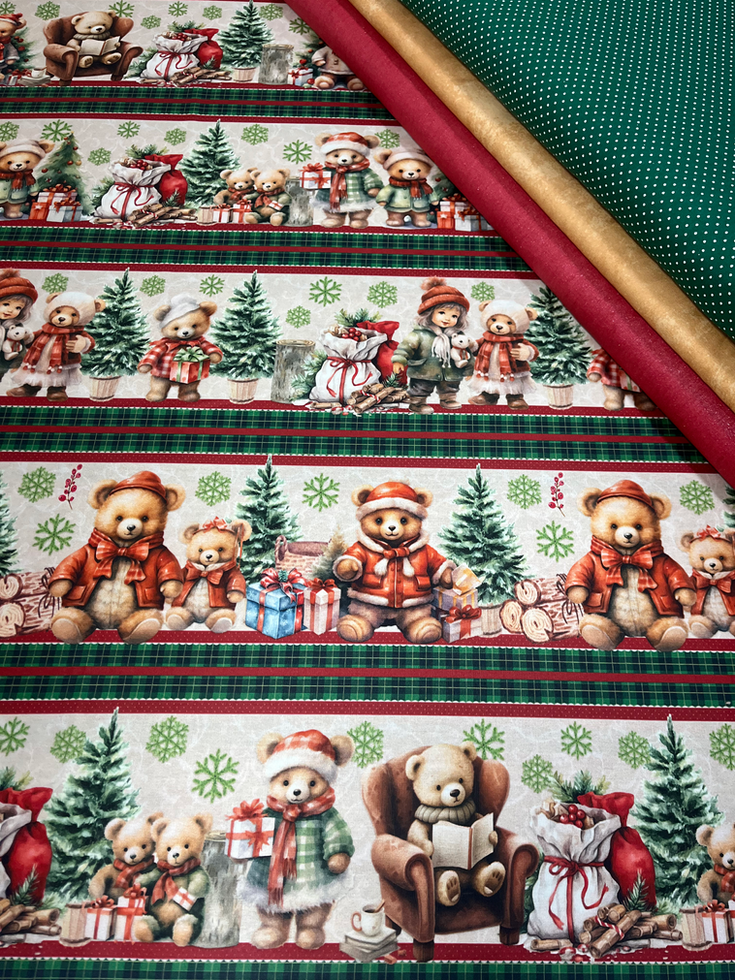 Tecido Tricoline Barrado Digital Natal Urso Beel 3418 IG - 55x150cm